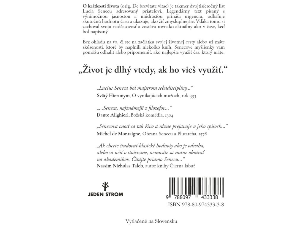 „Ale tým, ktorých život je ďaleko od cudzích a zbytočných povinností, ako by nemohol byť dlhý?“Kapitola XI.Seneca, ako jeden z najvýznamnejších predstaviteľov stoicizmu, nás v tomto nadčasovom diele núti prehodnotiť, ako nakladáme s časom. Ukazuje, že kvalita života nezávisí od jeho dĺžky, ale od toho, ako ho využijeme.